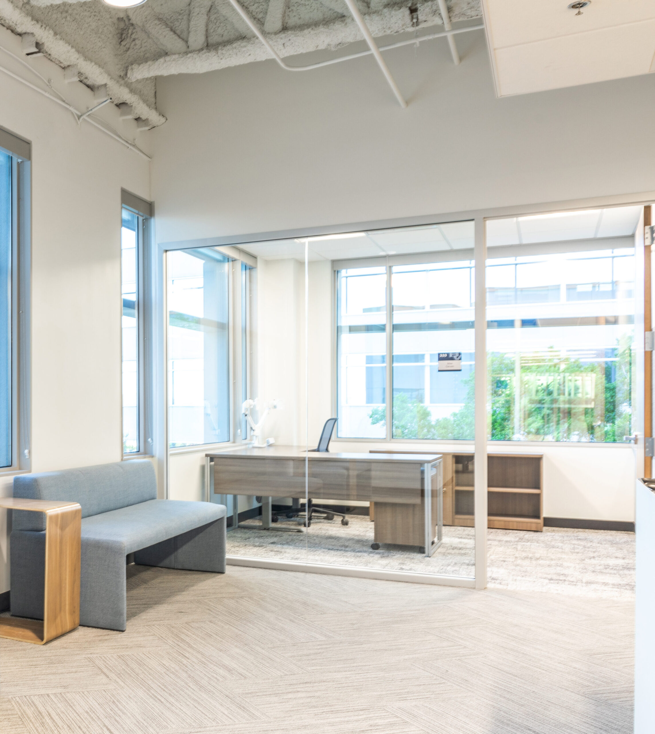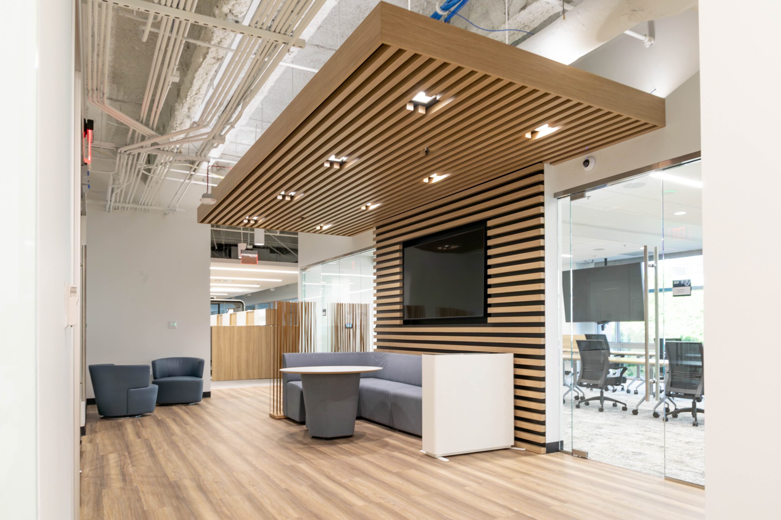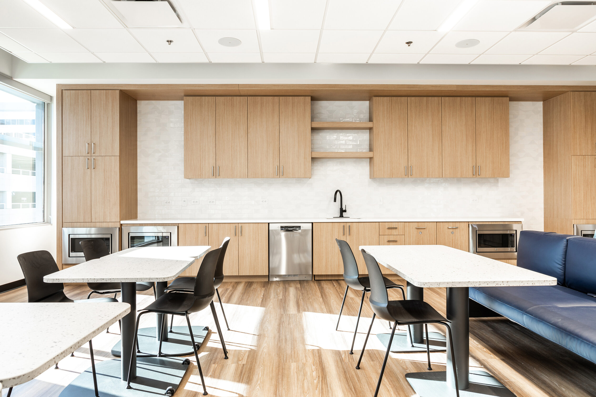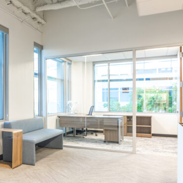 This bright and refreshing tenant improvement is the perfect fit for Black & Veatch and its more than 100-year track record of innovation in sustainable infrastructure. Located in the Camelback Corridor, the project spans 19,869 square feet of workspace complemented by 1,435 square feet of common area. Anchored by shades of blue and natural wood, the project delivers a balance of efficiency and comfort that extends across flexible work and meeting spaces, and inviting gathering spots. An open ceiling boosts the sense of scale and maximizes the natural light created by expansive windows. Smart floorplans further amplify this restorative feature, letting nature in via unobstructed views of the surrounding tree line.