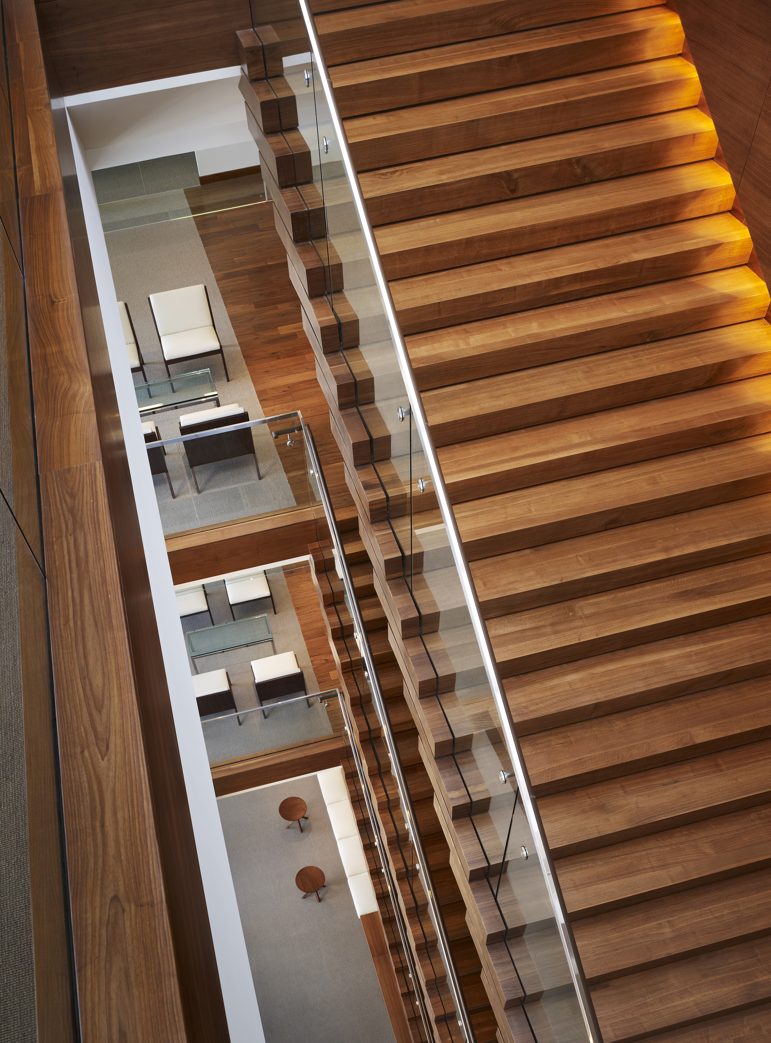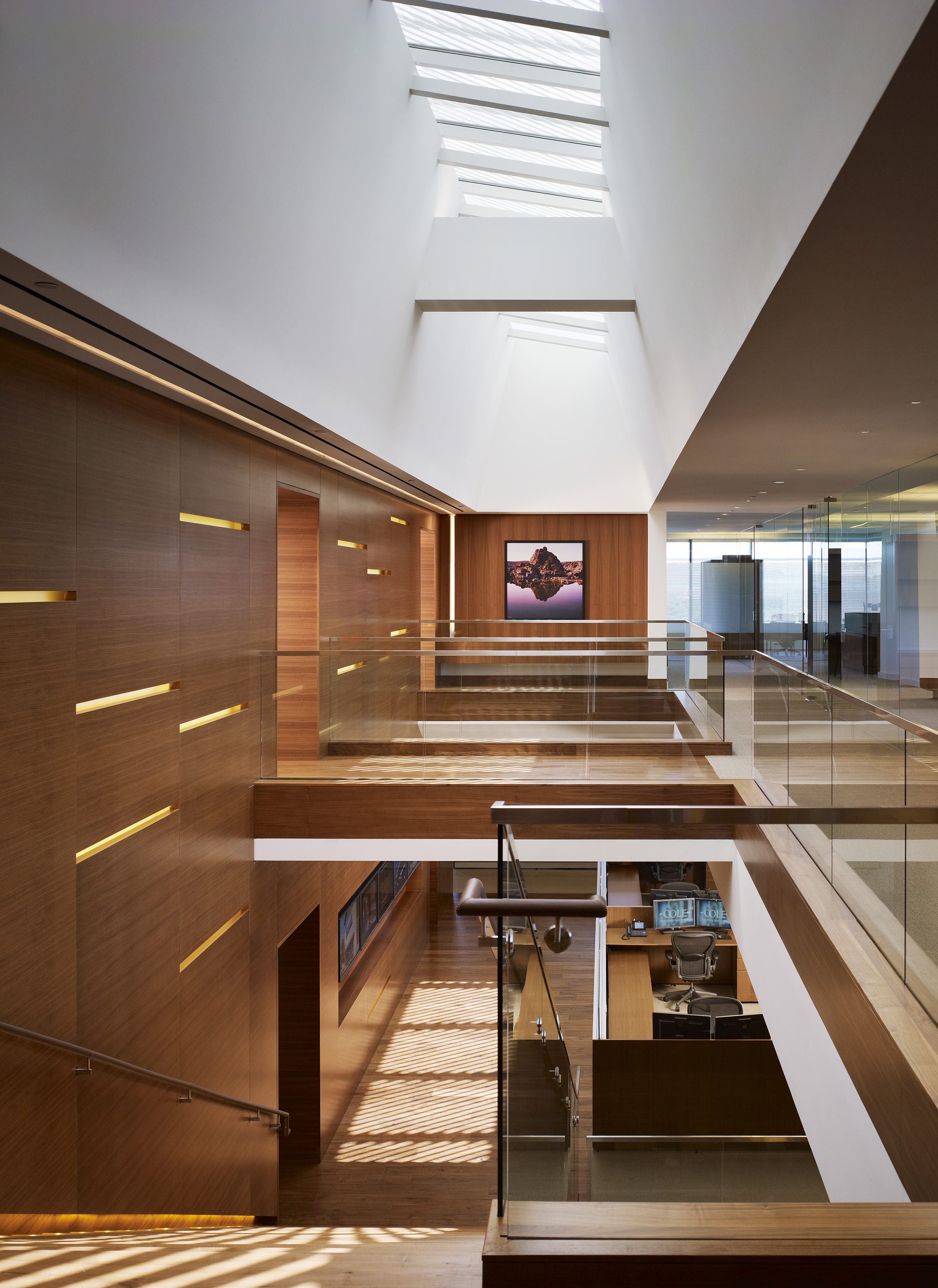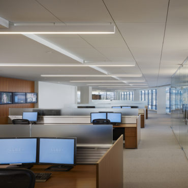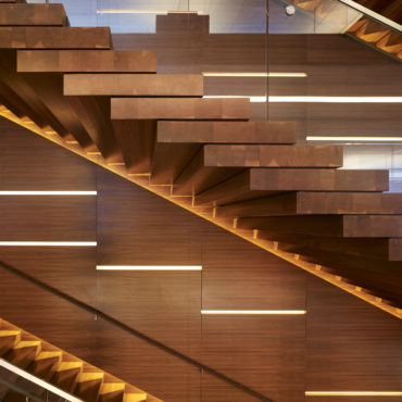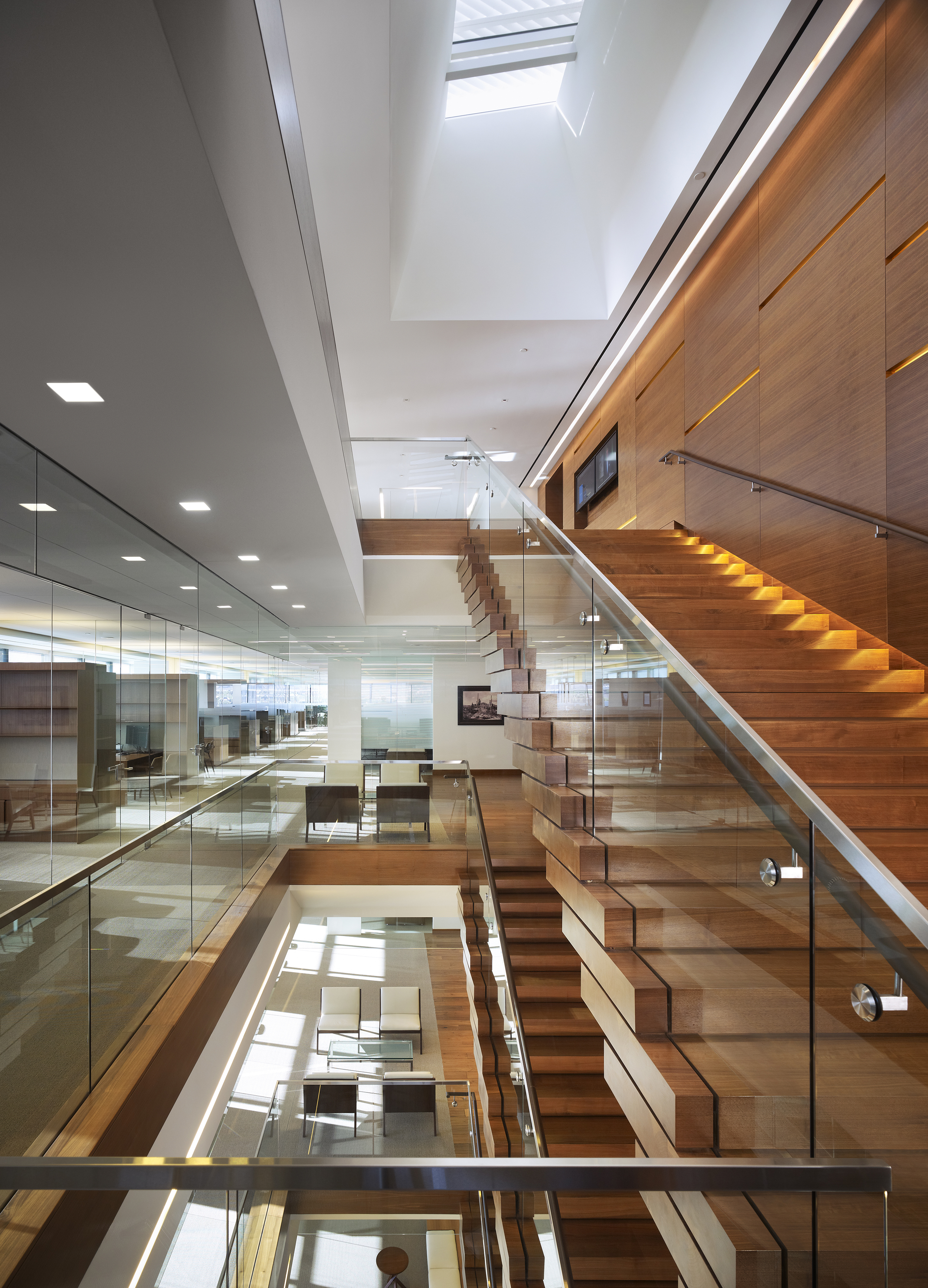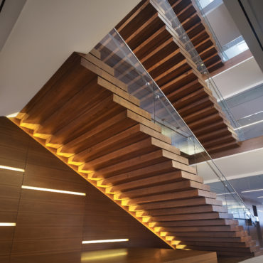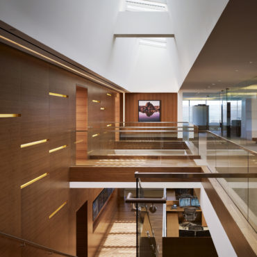 This TI was a Class A corporate office space totaling 120,000 SF. Key scope included installation of a connecting stair between floors 8-11, as well as the installation of a skylight over the stair in the building roof. The stair and the skylight required structural modifications to the shell building to create the openings in the floors and roof.