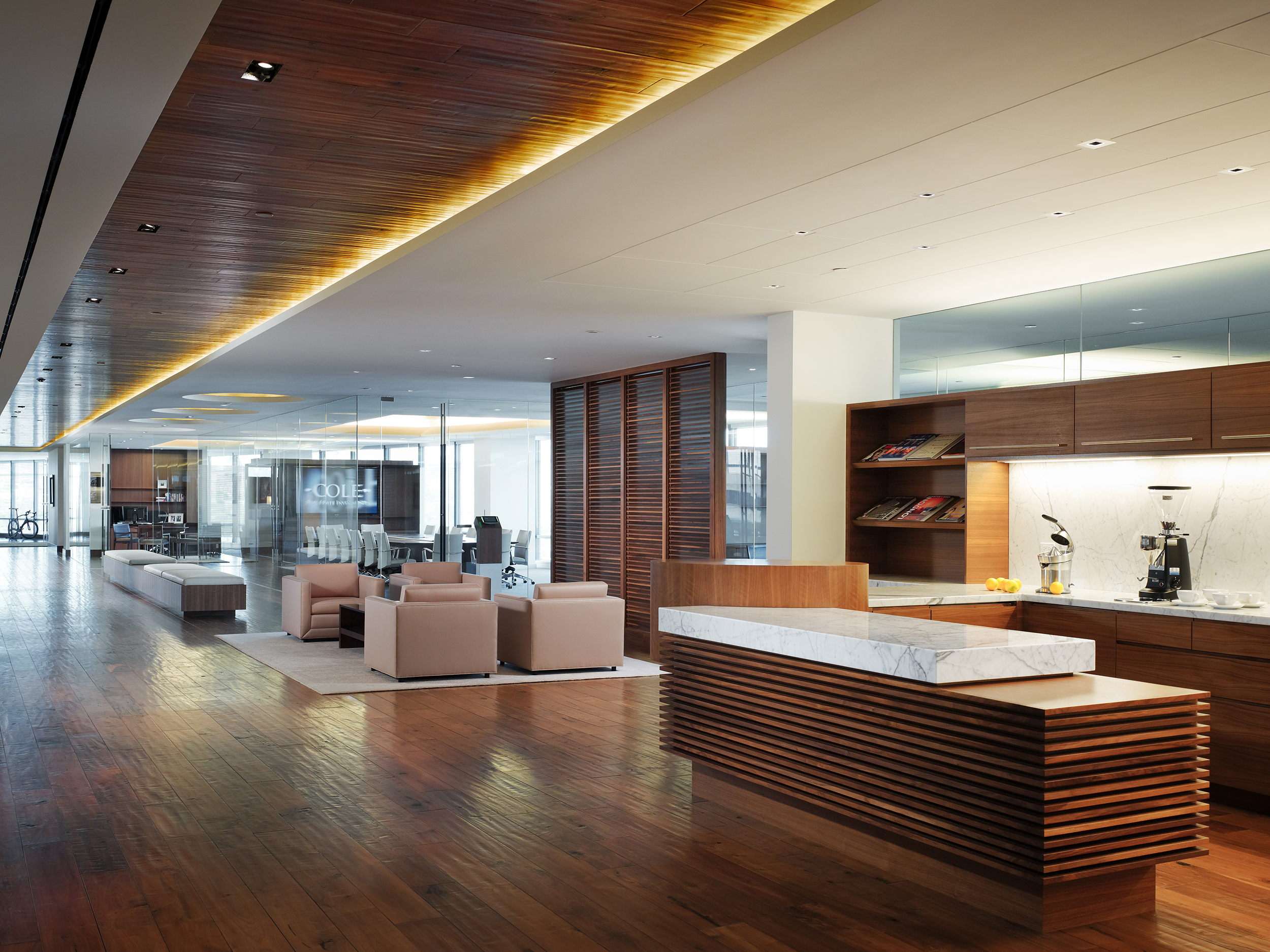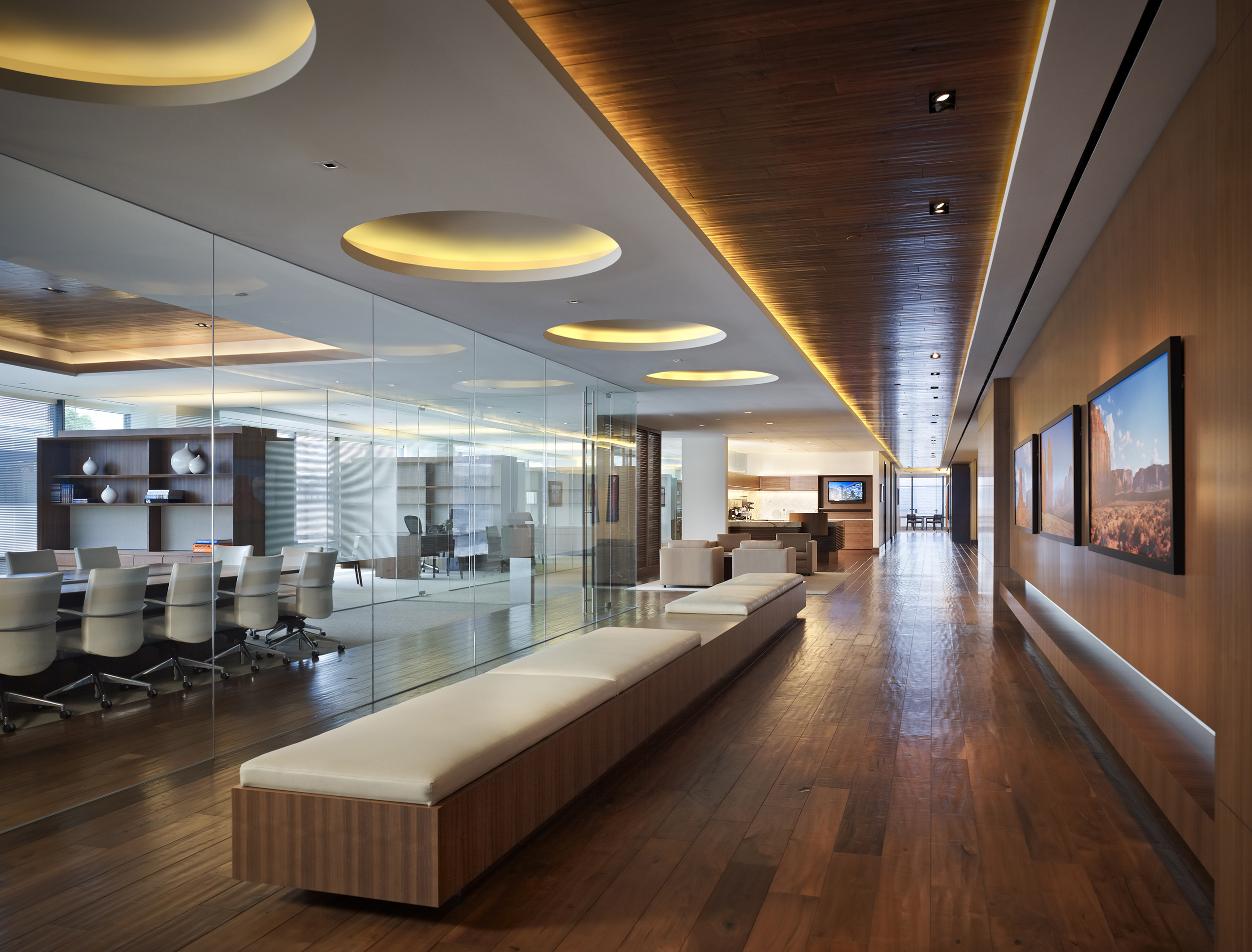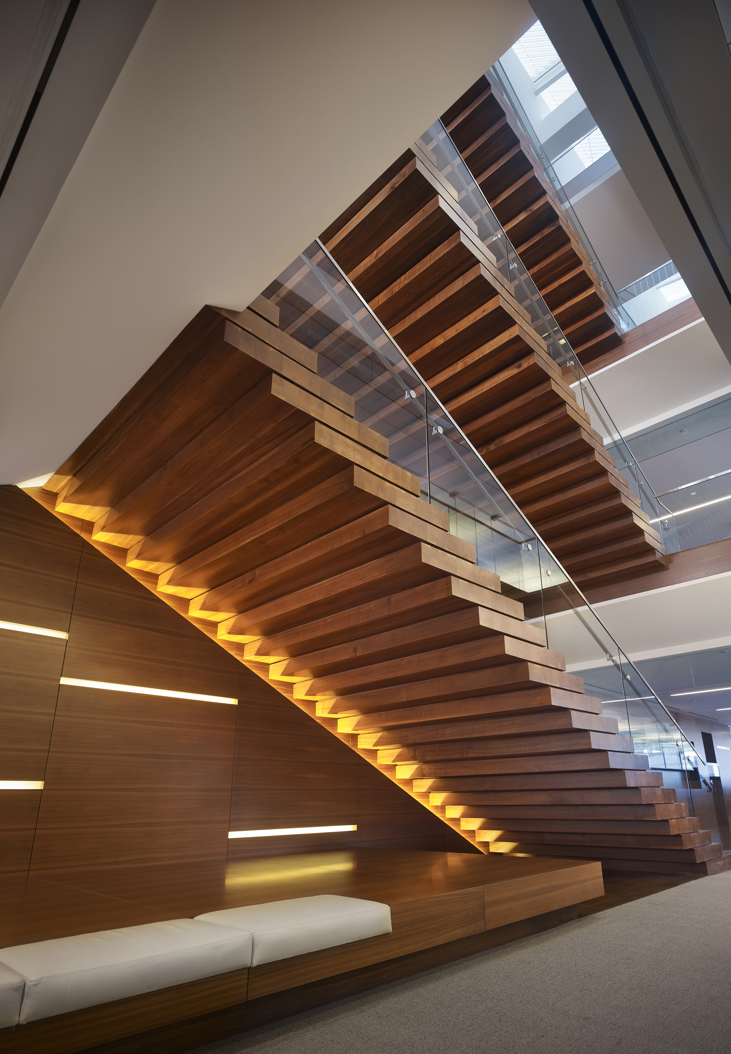 This TI was a Class A corporate office space totaling 120,000 SF. Key scope included installation of a connecting stair between floors 8-11, as well as the installation of a skylight over the stair in the building roof. The stair and the skylight required structural modifications to the shell building to create the openings in the floors and roof.