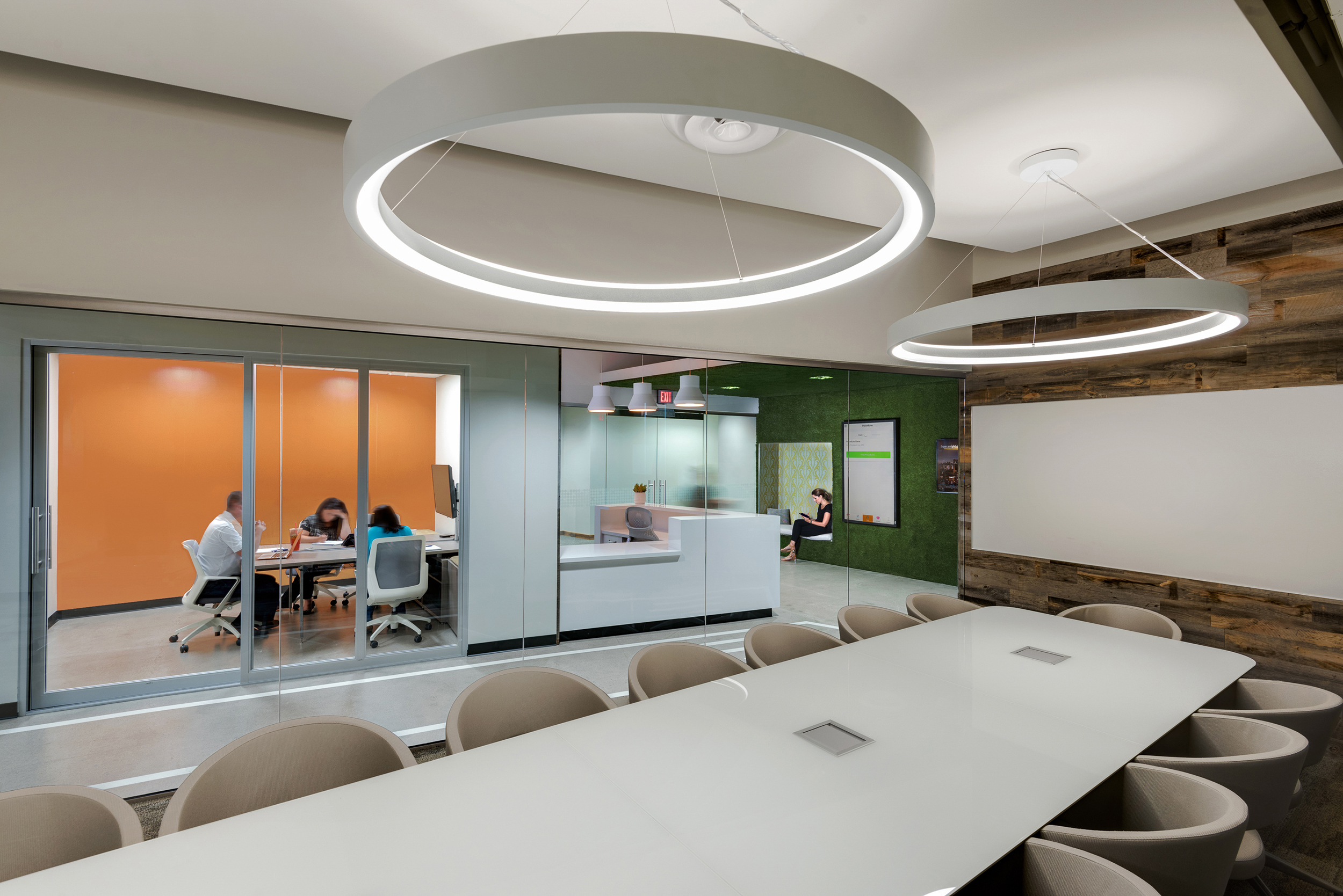 Healthiest You is a 15,000 SF, First Generation, Interior Suite Buildout. Mix of industrial and commercial office feel with exposed deck, lay in ceilings, floating soffits, and high-end wall and floor finishes.