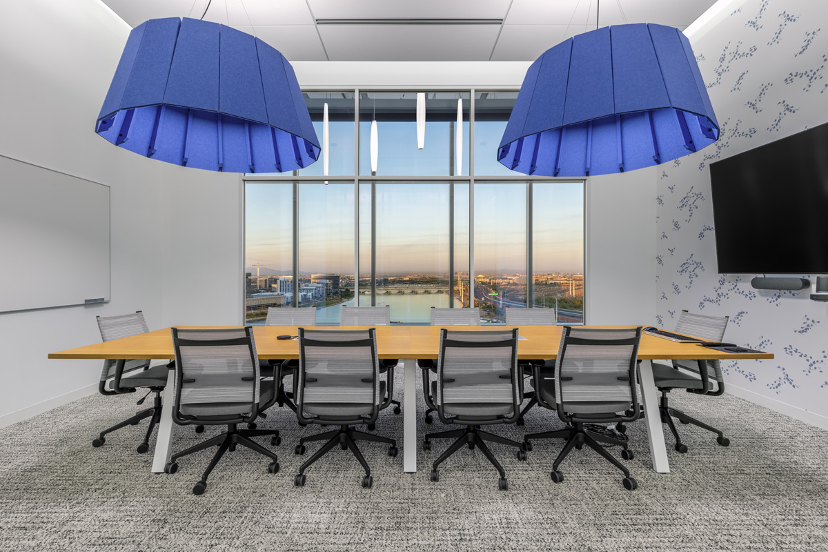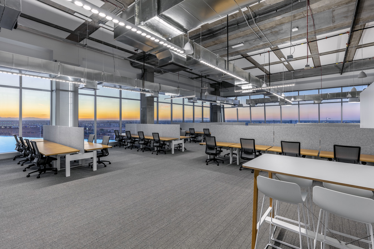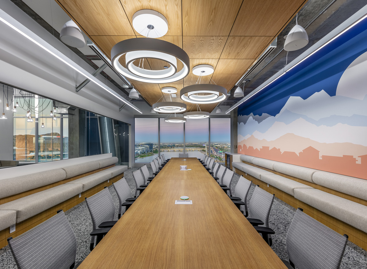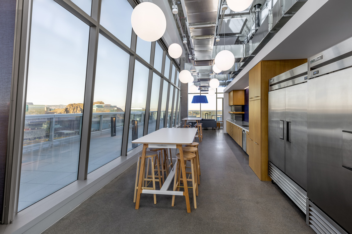 Selected as one of the “Coolest Offices of 2021” by AZRE Magazine, the Opendoor tenant improvement spans the top three floors of Watermark at Tempe Town Lake, combining a state-of-the-art technology infrastructure with comfortable and visually striking work, conference and gathering spaces. Build-out of the reception area, shared spaces and workspaces maximize the building’s sweeping lake and skyline views. Technology is also at work throughout the project, delivering premier connectivity, acoustics and direct and indirect lighting for a highly productive work environment. Completed during COVID-19, the Opendoor TI required ongoing adaptation to safety guidelines and significant re-value-engineering to overcome pandemic roadblocks, ensuring an on-time and on-budget delivery.