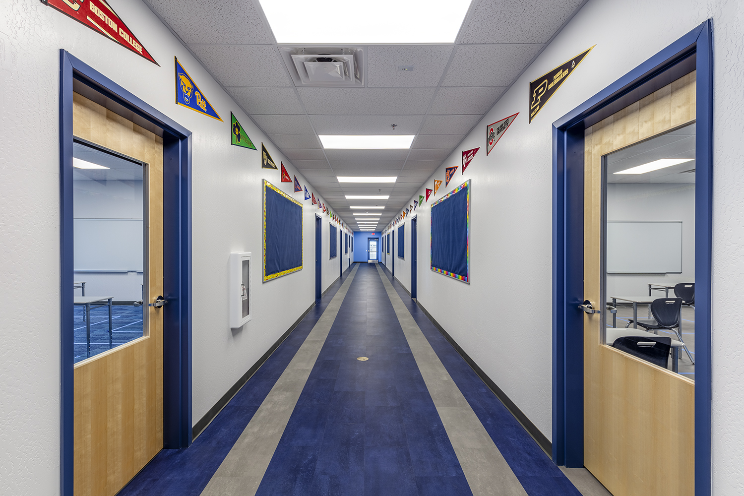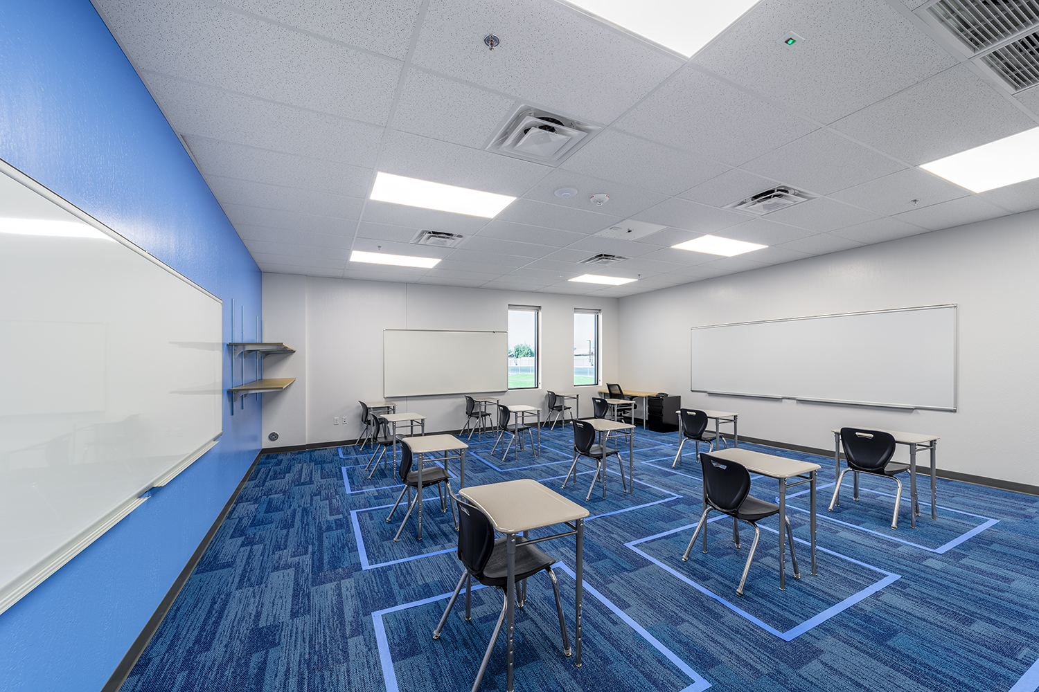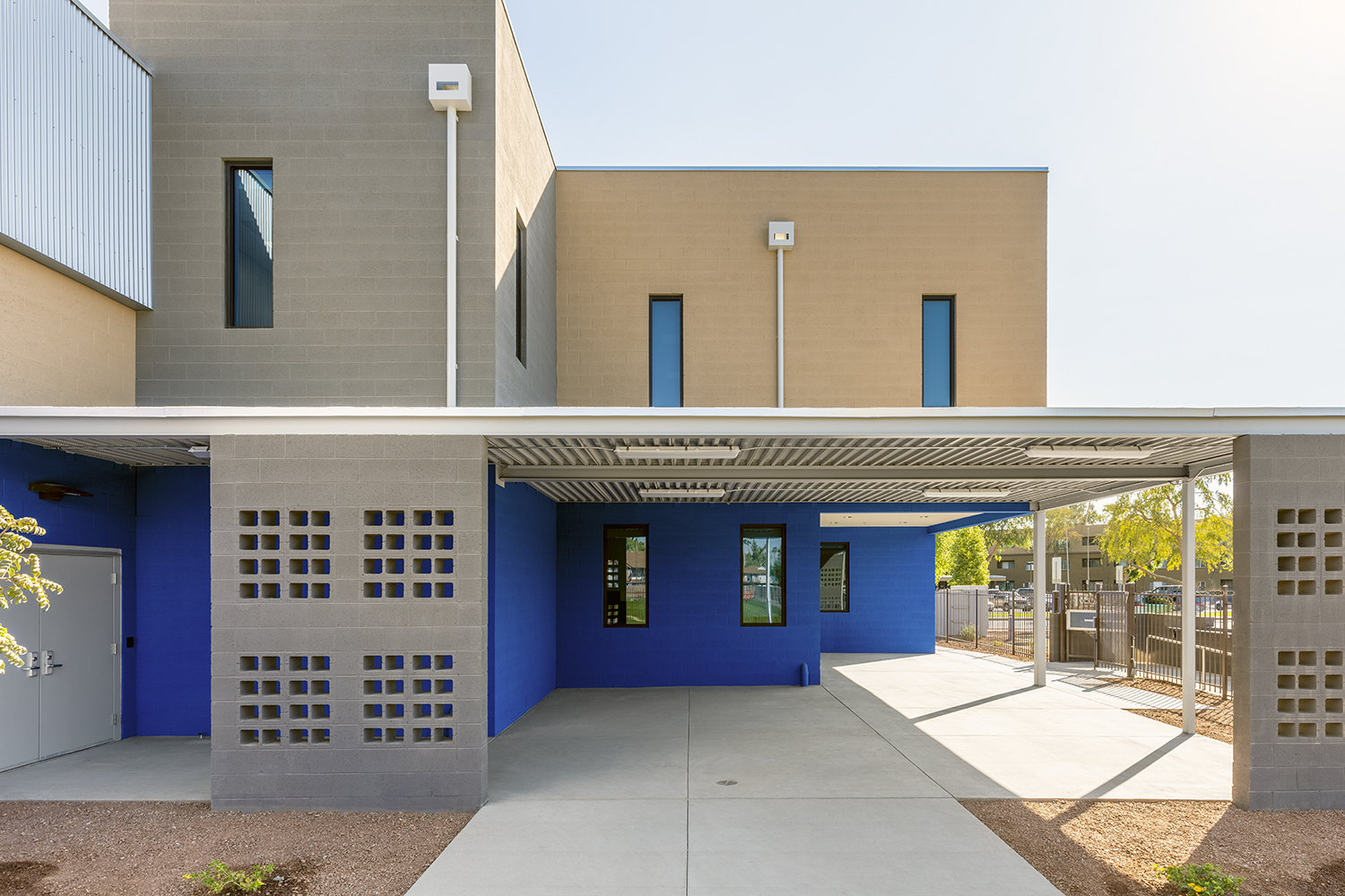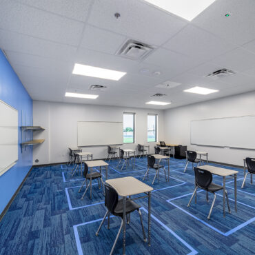 This is a two-story, 36,000 SF charter school facility. Exterior features include masonry, steel stud with EFIS, metal paneling, high efficiency glazing and a decorative metal stud design with the school logo integrated.