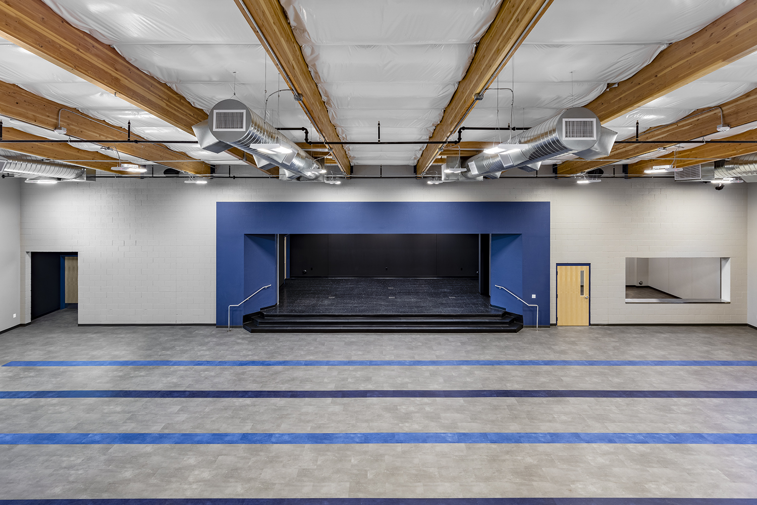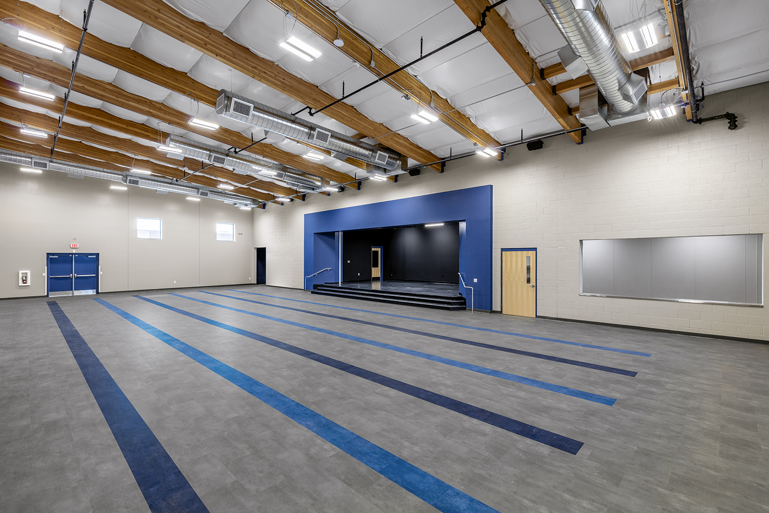 The interior will include classrooms, teachers’ offices, reception area, lunch room, science labs and a full gymnasium. The gymnasiums will have adjustable basketball hoops, full air-conditioning with duct sox flexible ducting and a full sound absorption system. The construction is being completed while the adjoining church/school facility remains in operation.