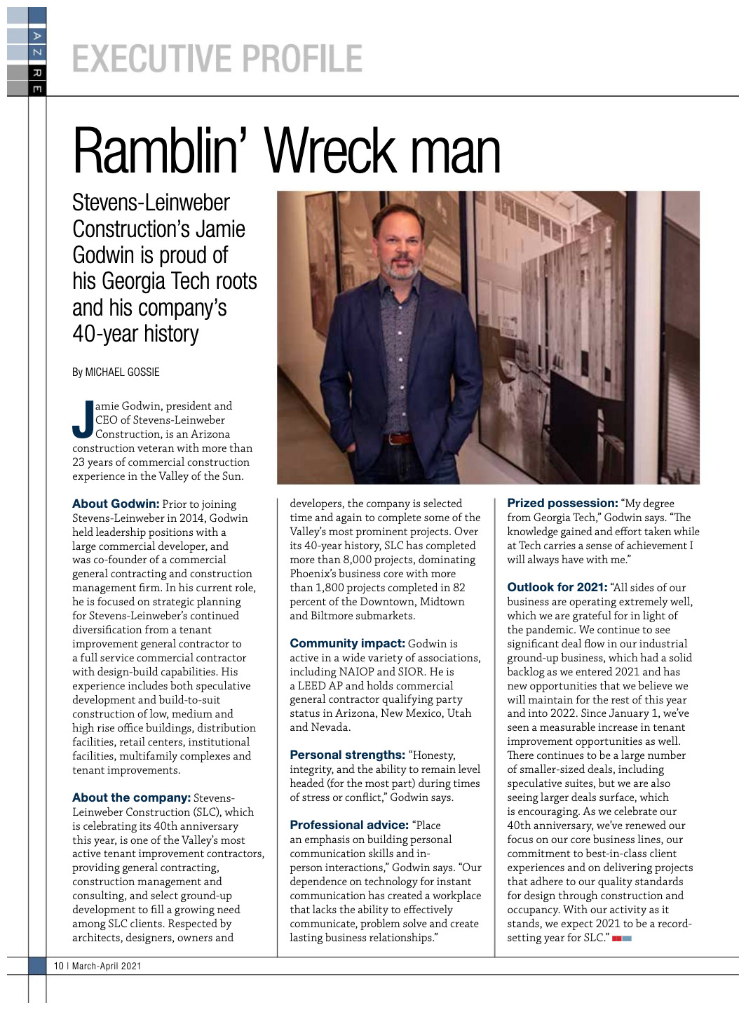 Stevens-Leinweber Construction’s Jamie Godwin is proud of his Georgia Tech roots and his company’s 40-year history.